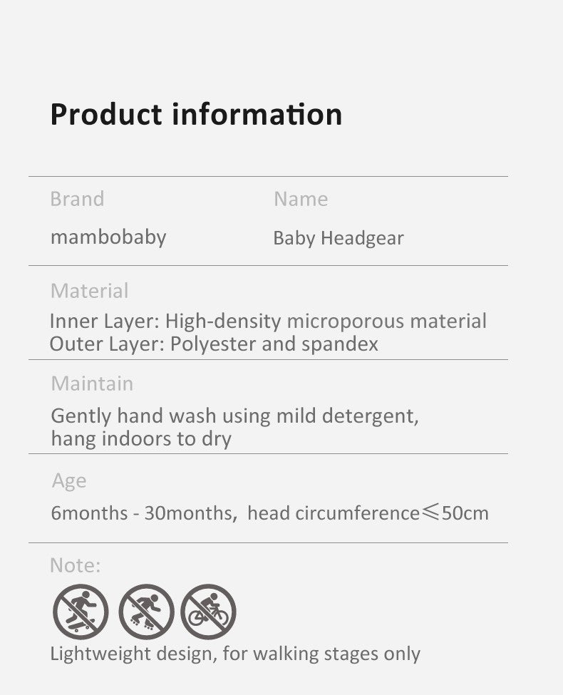 O Capacete para Bebês MAMBOBABY GUARD foi cuidadosamente projetado por nosso designer-chefe, Remus, com base em sua experiência com seus três filhos, que frequentemente batiam a cabeça enquanto aprendiam a andar. Após analisar os pontos fortes e fracos dos capacetes para bebês existentes, ele criou este produto especificamente para proteger a cabeça dos bebês durante as fases de engatinhar e andar.